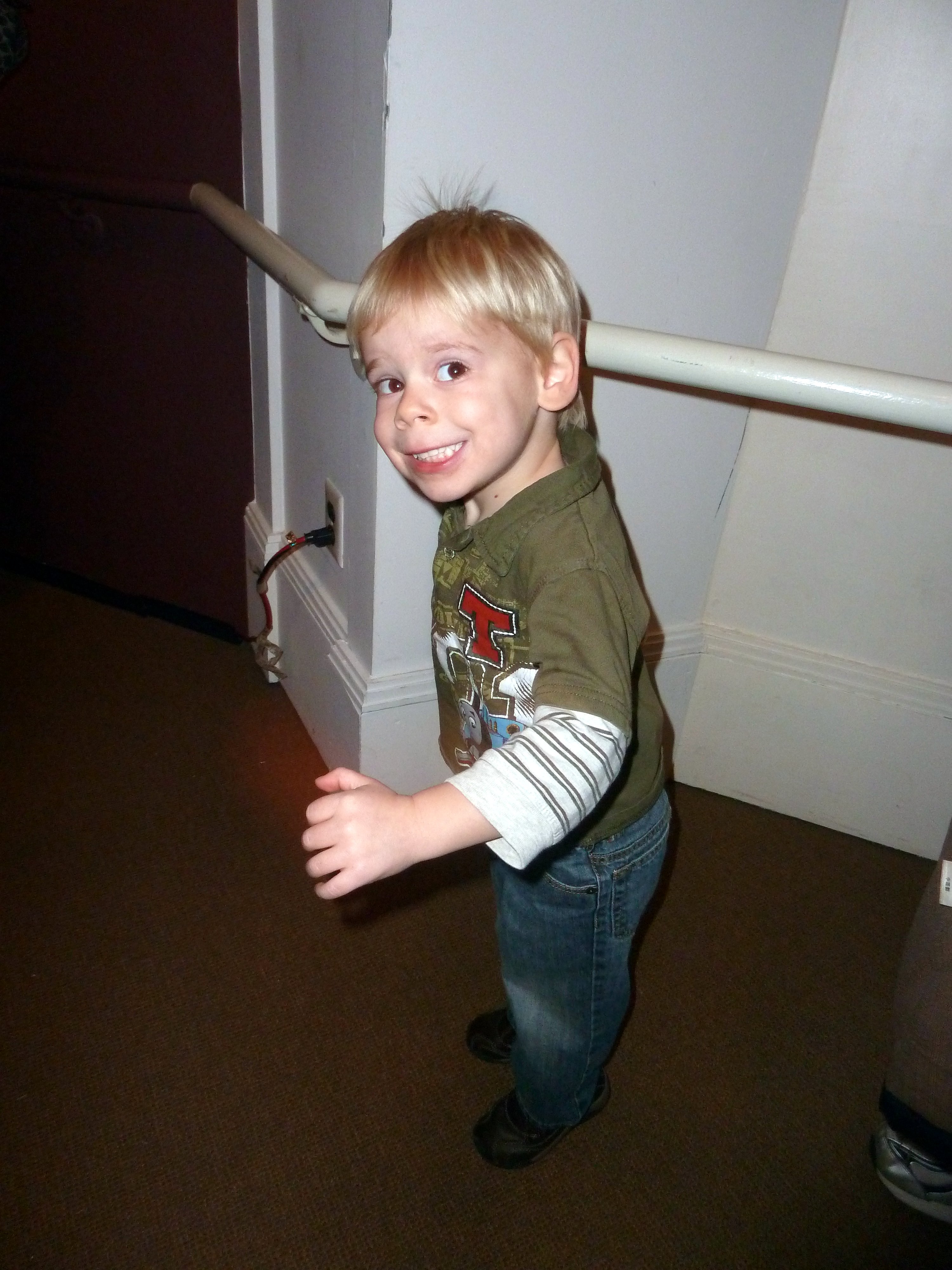 I was less interested in smiling for the camera than showing Thomas that he was on my Thomas shirt! I think he really liked it.