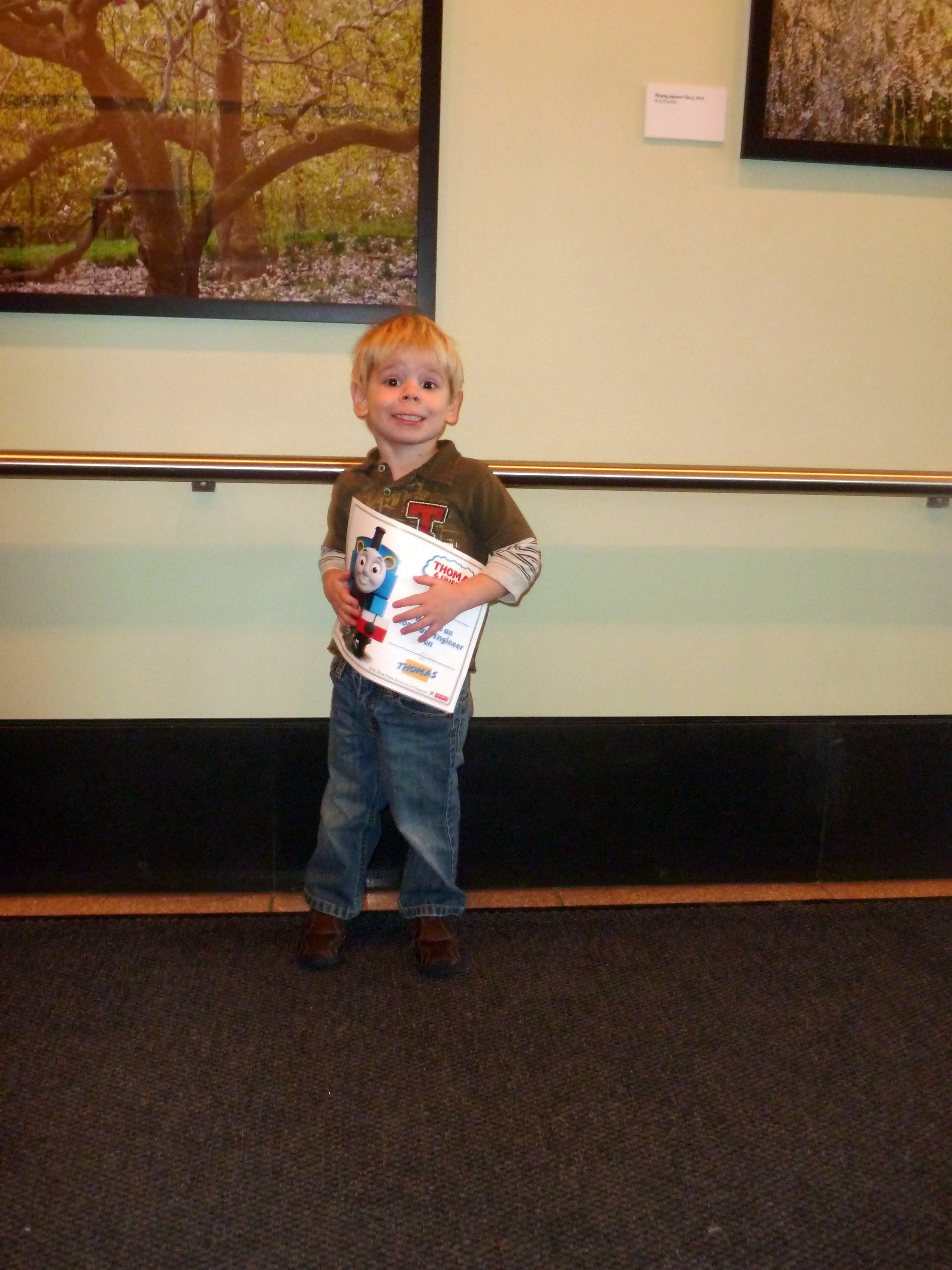 As we exited the theater, the kids got stickers and temporary tattoos, PLUS personalized Thomas certificates. I can’t read yet, so I’m pretty sure that piece of paper just says that Thomas and I are BFFs now.