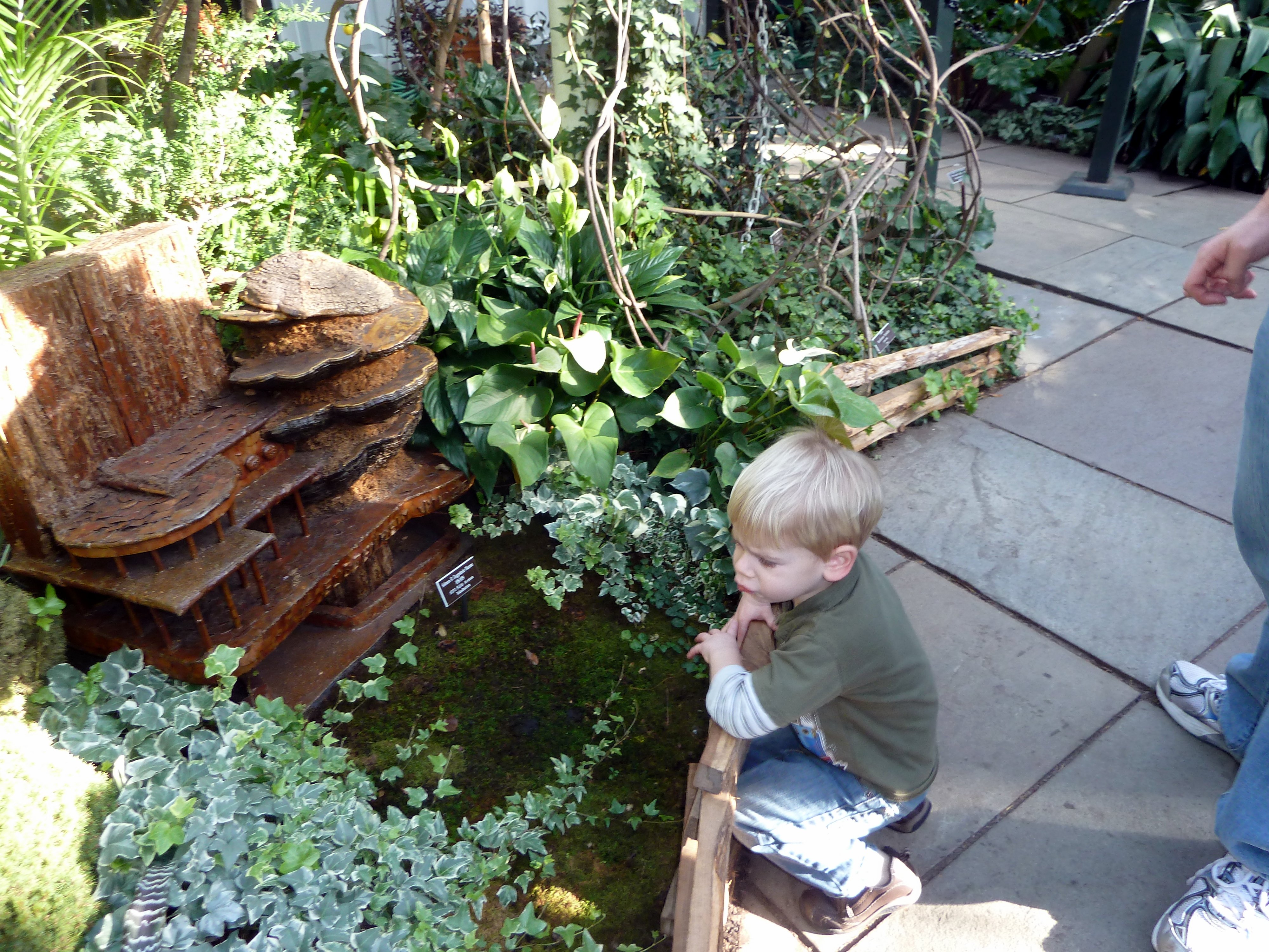 - Consider a stroller. Strollers are NOT permitted in the conservatory train show area, or in the theater, but there are convenient places to park them at each location. You know that Mommy is a babywearing diva, so we grabbed a few SSCs and went on our way, but a stroller would have been helpful, if only to hold our costs for us while we explored the conservatory.