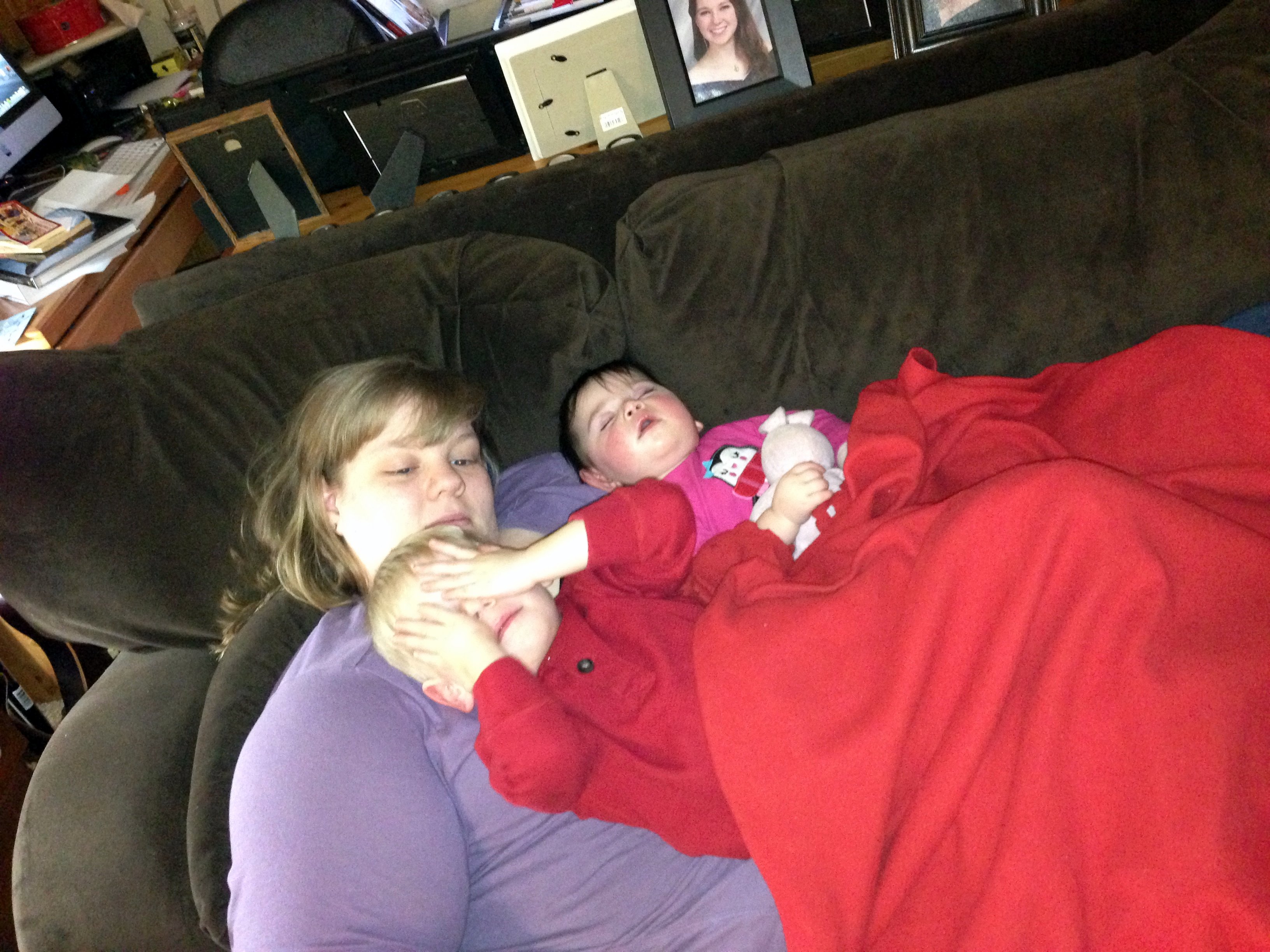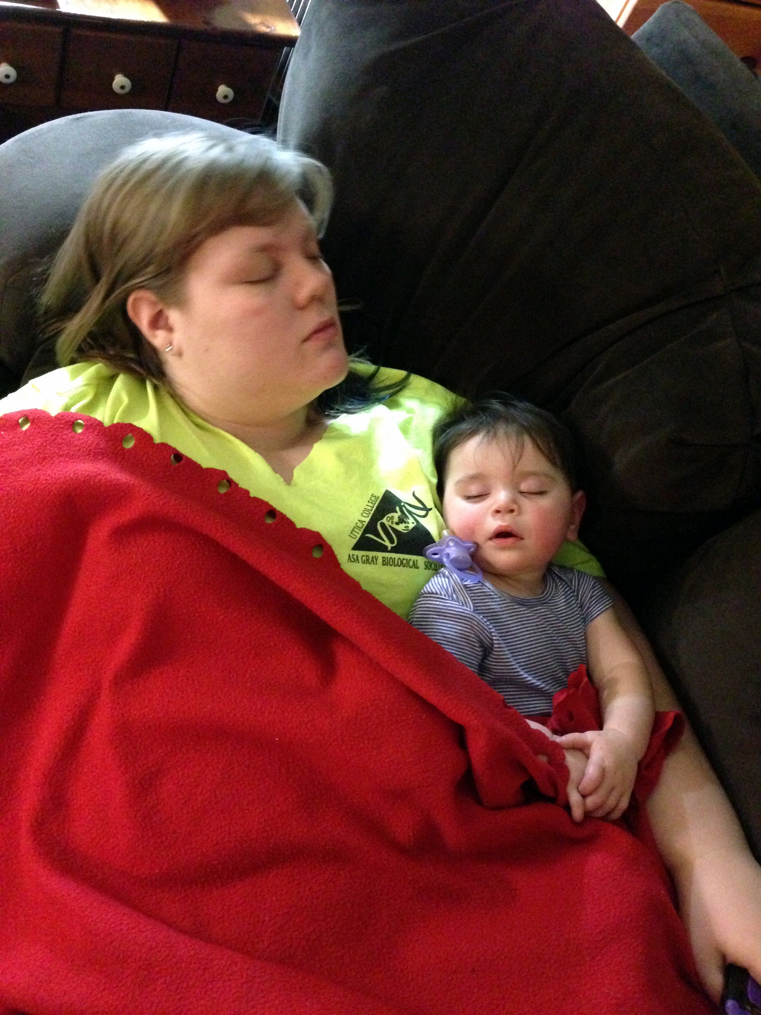 Birthdays are tiring; I took a little nap with Cousin Amy.
