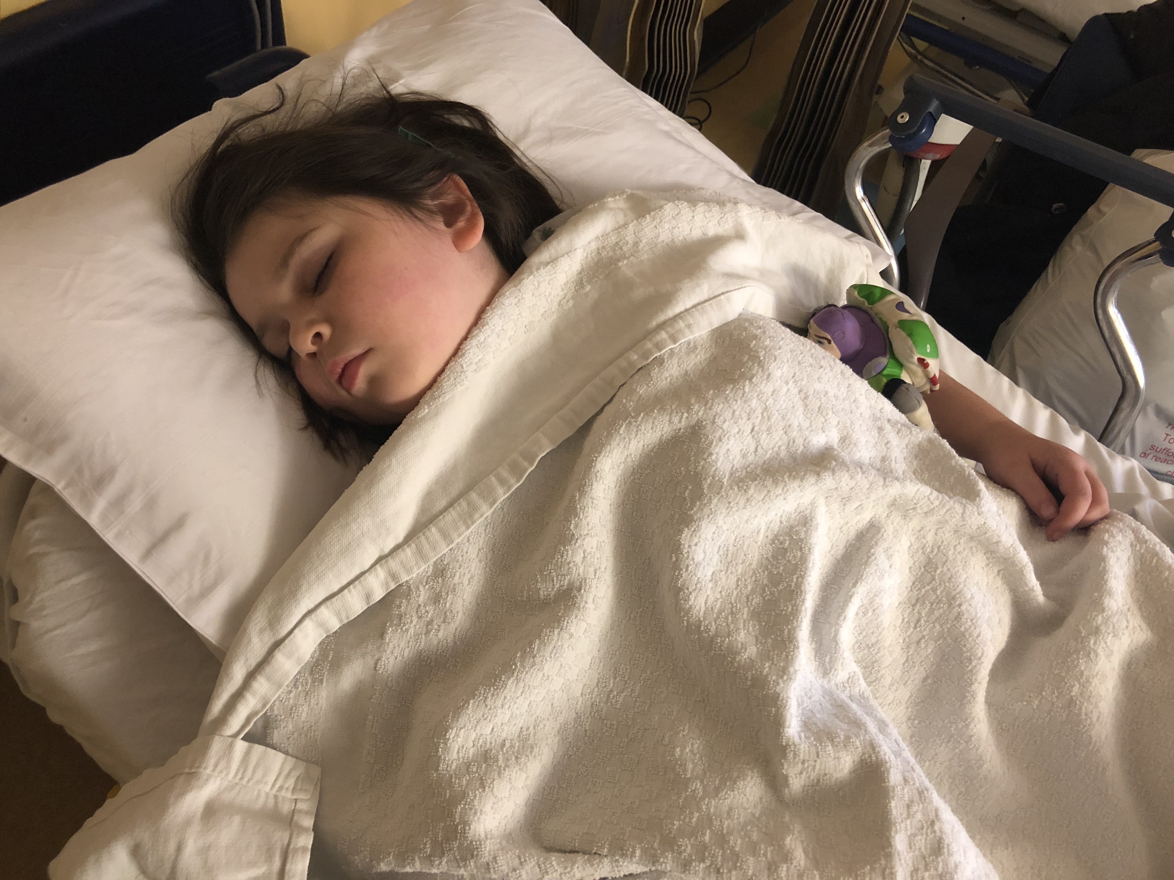 Because she was getting pictures of #allthethings (brain, optics, brain stem, complete spine – all with and without contrast), the scan was about 3 1/2 hours long.