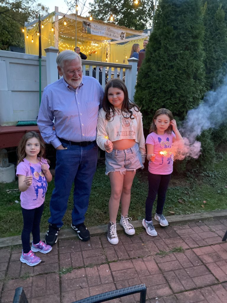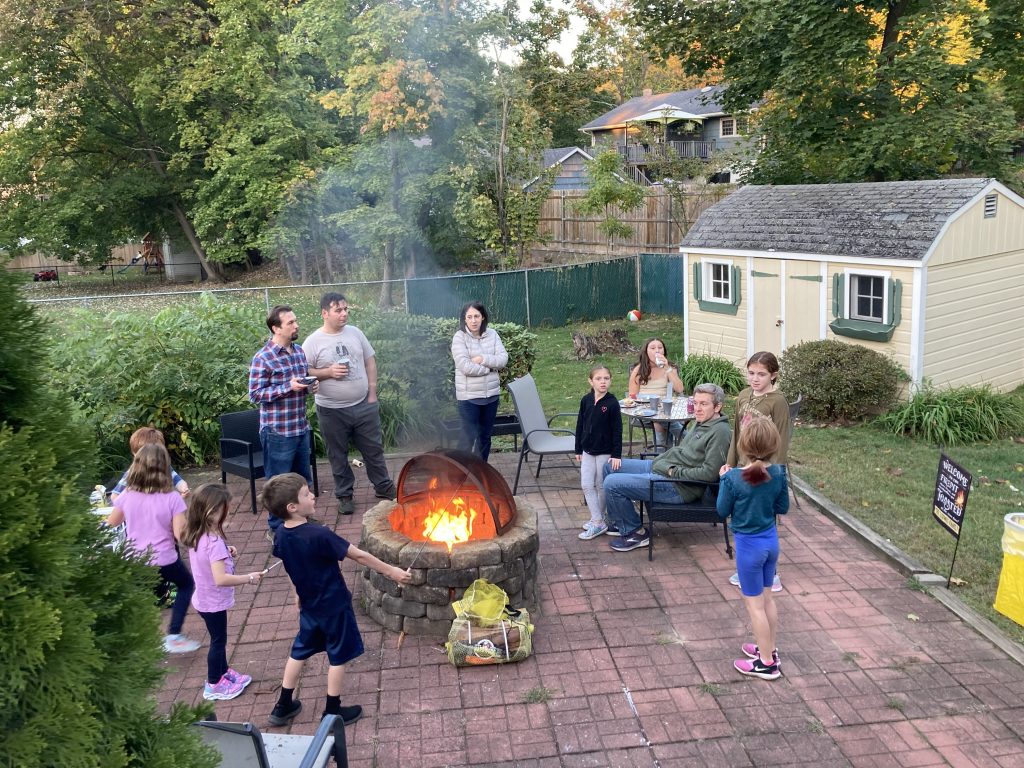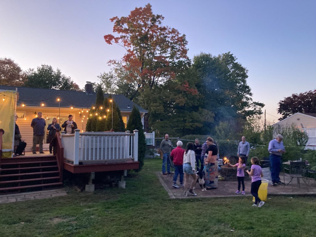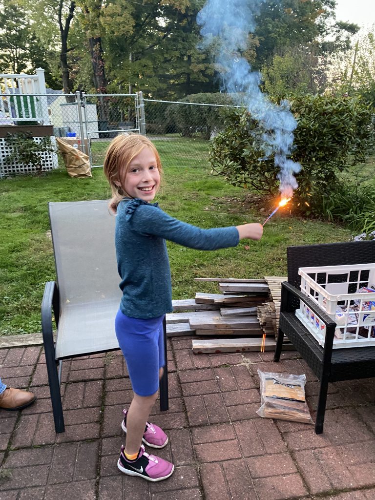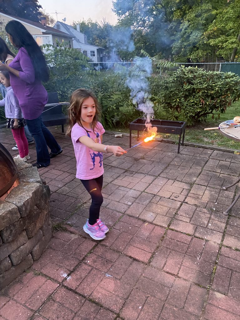 Sukkot is one of my very favorite holidays and we love having people over to our sukkah, so we had a smaller gathering of friends with kids in the afternoon – s’mores and sparklers and sukkah crafts, plus even more food.